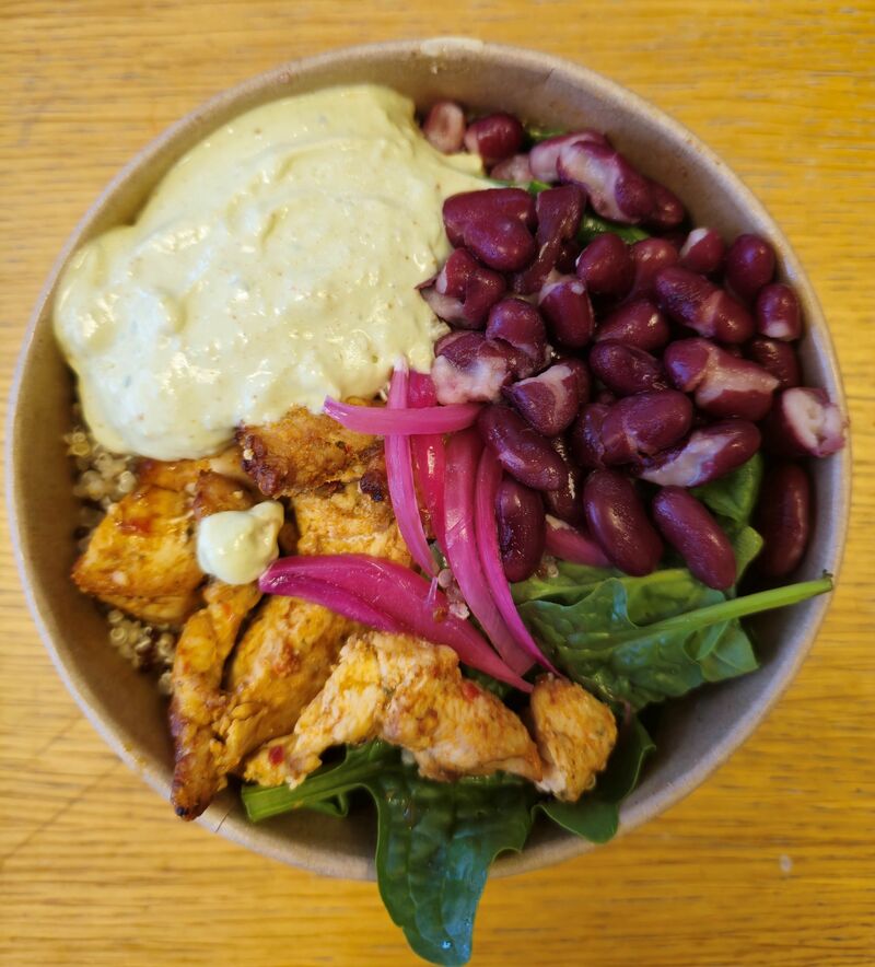 Nous proposons une cuisine saine, sucrée ou salée, chaude ou froide, de l’entrée au dessert. Nos jus de fruits frais minute et nos coockies font également le régal de notre clientèle.